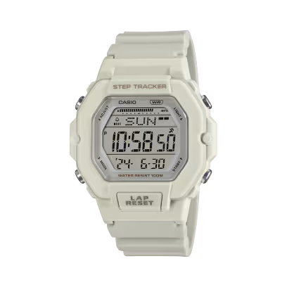 “Keep in step and on track with function and style. Take control with the support you need to stay healthy and manage your exercise. The step tracker automatically counts steps as soon as you start moving, thanks to the 3-axis accelerometer. Save up to 200 lap times on your watch, and track running times while displaying current time simultaneously. Steps taken are displayed in an easy-to-read bar graph, as well as past step logs, progress on workout goals, and other data. LED lighting makes sure all of this info is clearly visible at your fingertips, even at night! More finely spaced holes in the band make subtle adjustments possible to ensure the most comfortable, precision fit. And details like front buttons designed for easy operation even while running are sure to make this timepiece a favorite. Choose one of three simple colors for a timepiece sure to become your favorite athleisure fashion accessory.”