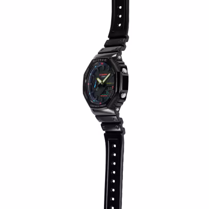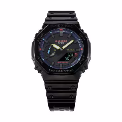 The bezels and bands bring in glossy black, while the faces feature rainbow vapor deposition and multicolored designs. The result is a range of bold looks in prisms of cool color lighting up the darkness, which crushes in any fashion scene.