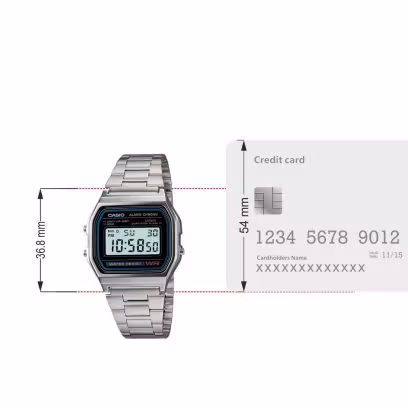 Sporting a classic stainless steel design, this silver Casio wristwatch from the Vintage Digital collection will take you through a nostalgia trip. With a water resistant system, this timepiece features a three-fold clasp, LED light, daily alarm, auto calendar and more. Extremely durable, this timepiece will see you through many seasons to come. It features adjustable buckle and comes with resin glass.