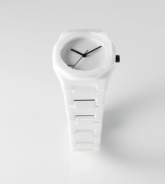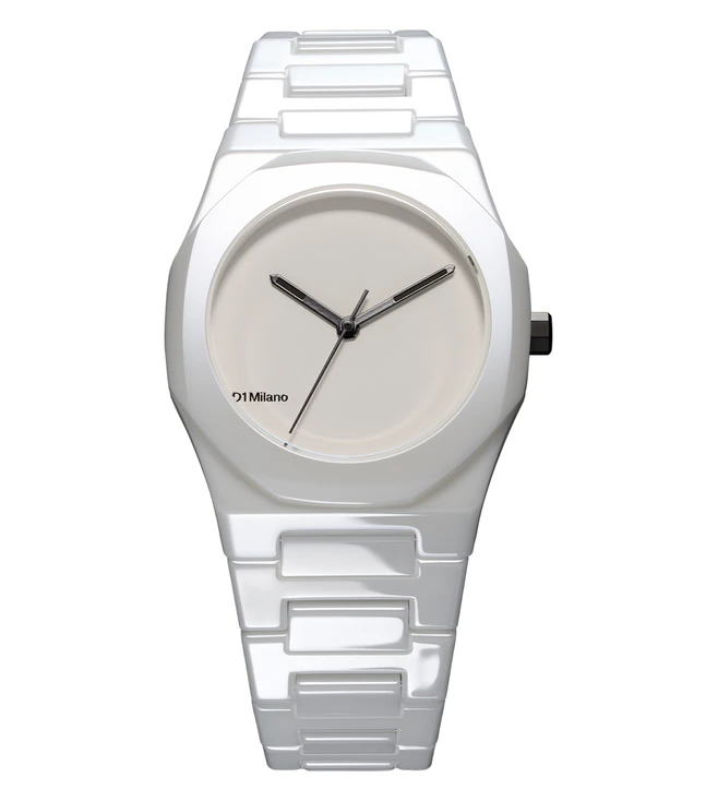The all-white aspect is a distinctive feature of this piece. The matte white dial,creates a fine contrast between the polished elements of the case and bracelet. The minute, hour, and seconds hands bond with the crown,creating a contrast of black in this ethereal white.
