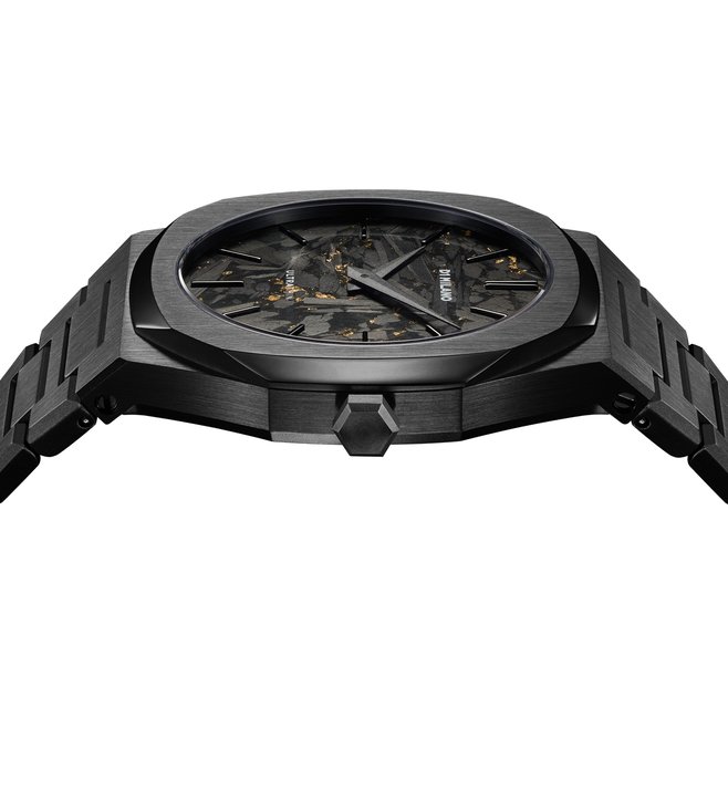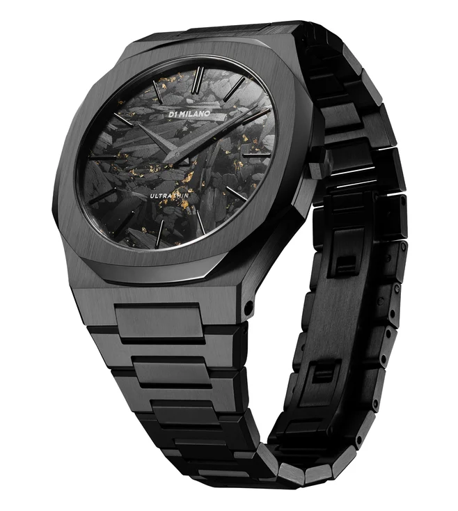 Introducing the New Ultra Thin Diamond like carbon, a true embodiment of sleek sophistication. With its diamond-like carbon dial and black stainless steel case and bracelet, this timepiece exudes an aura of elegance and modernity.