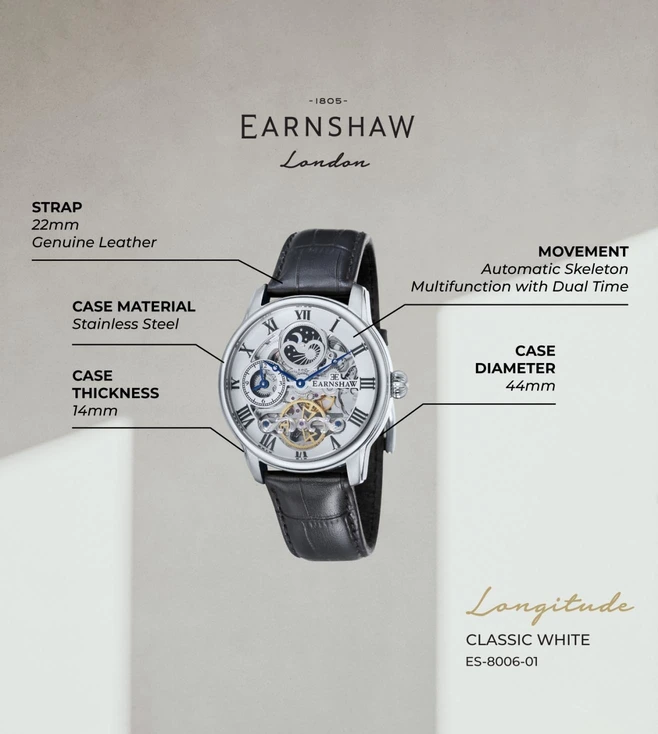 In producing the Meteorite edition of the Longitude multifunction swiss made automatic watch, the EARNSHAW brand continues a journey of producing exceptional pieces that utilize the best in watch making techniques, dressed in the classic traditions of watch design. The Meteorite edition marries the same Longitude case but takes a piece of genuine Muonionalusta meteorite which is painstakingly carved and assembled in Switzerland.