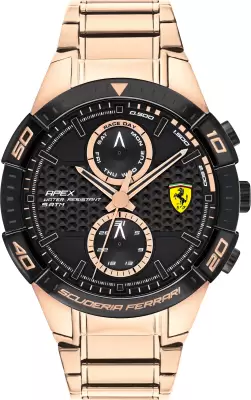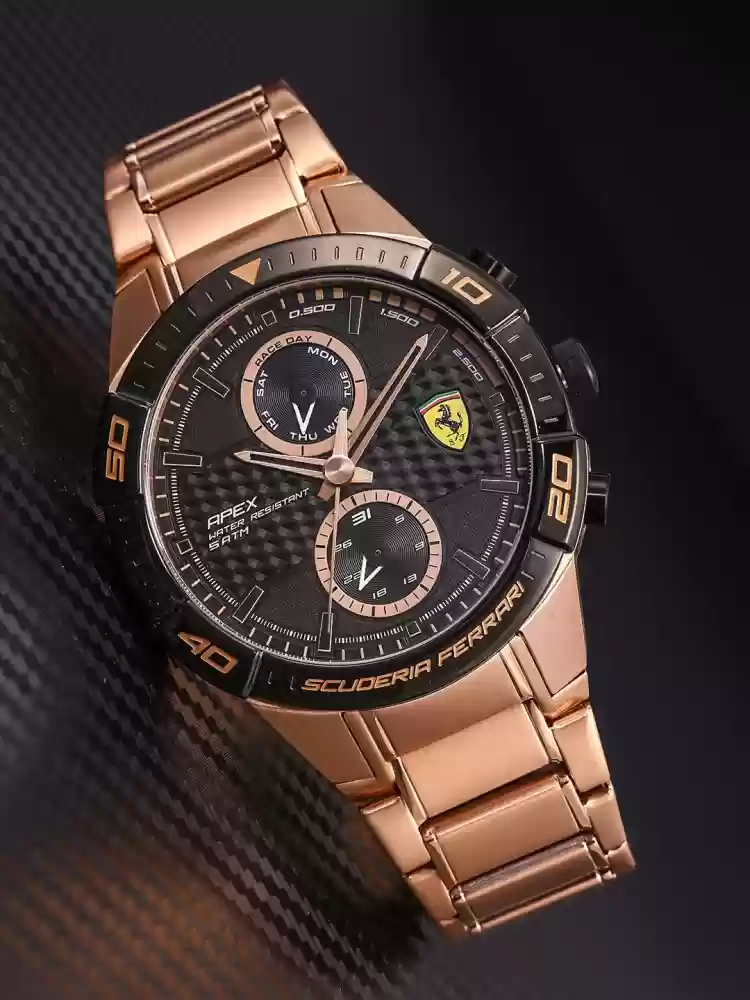 Scuderia Ferrari Orologi collection introduces a new family for the Spring and Summer 2019 season. Apex features bold and colourful designs that exude high energy for the superfan. The deep honeycomb texture on the dial and strap is inspired by a racecar’s monocoque. These sporty timepieces are offered in 3-hand and multifunction movements on rose gold and silicone straps. It is water-resistant to 50 metres.
