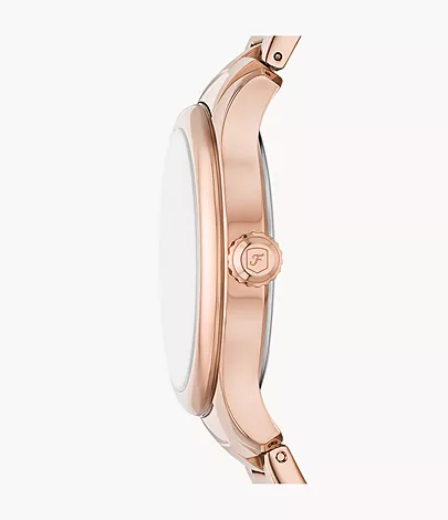 The Gilmore watch combines vintage-inspired design with modern versatility. Its slim rose gold-tone case features a light-reflecting silver sunray dial paired with a sleek H-link bracelet. A three-hand date movement lends timeless functionality, keeping you on schedule. Wear this classic companion from morning meetings to an evening out.