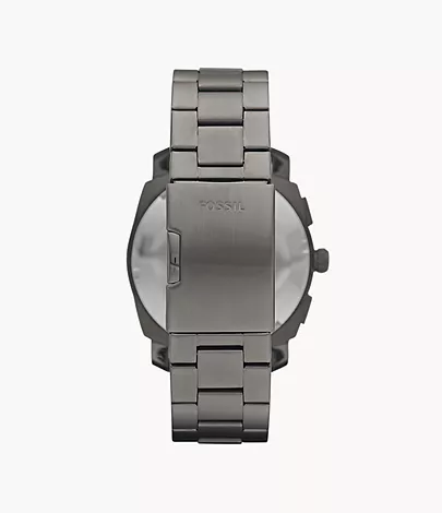 This functional timepiece is made with chic smoke-colored stainless steel and a black velvet dial. This Machine watch also features a chronograph movement on a stainless steel bracelet.
