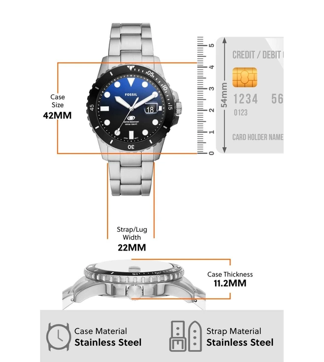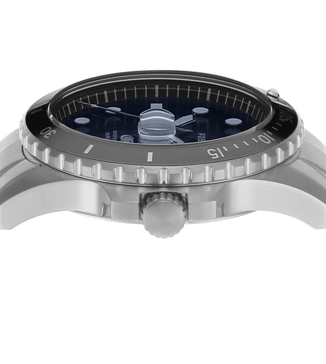 Experience perfection, one second at a time with this watch from the Dive collection by Fossil. Housed in a 42 mm case, the dial is shielded with mineral glass and runs on a quartz movement. It is water resistant up to 100 m and is ideally suitable for men. This dive-style timepiece is expertly crafted with a 3-link bracelet, geometric indices and a uni-directional rotating top ring.
