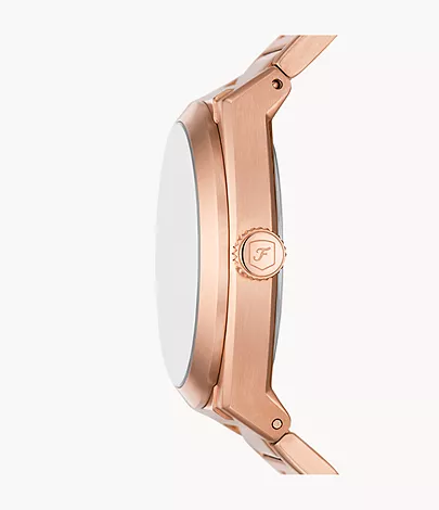 Featuring colours that are on trend for the season, this sporty Everett watch favors the bold with a rose gold-tone stainless steel H-link bracelet and genuine green marble stone dial featuring eye-catching indices.