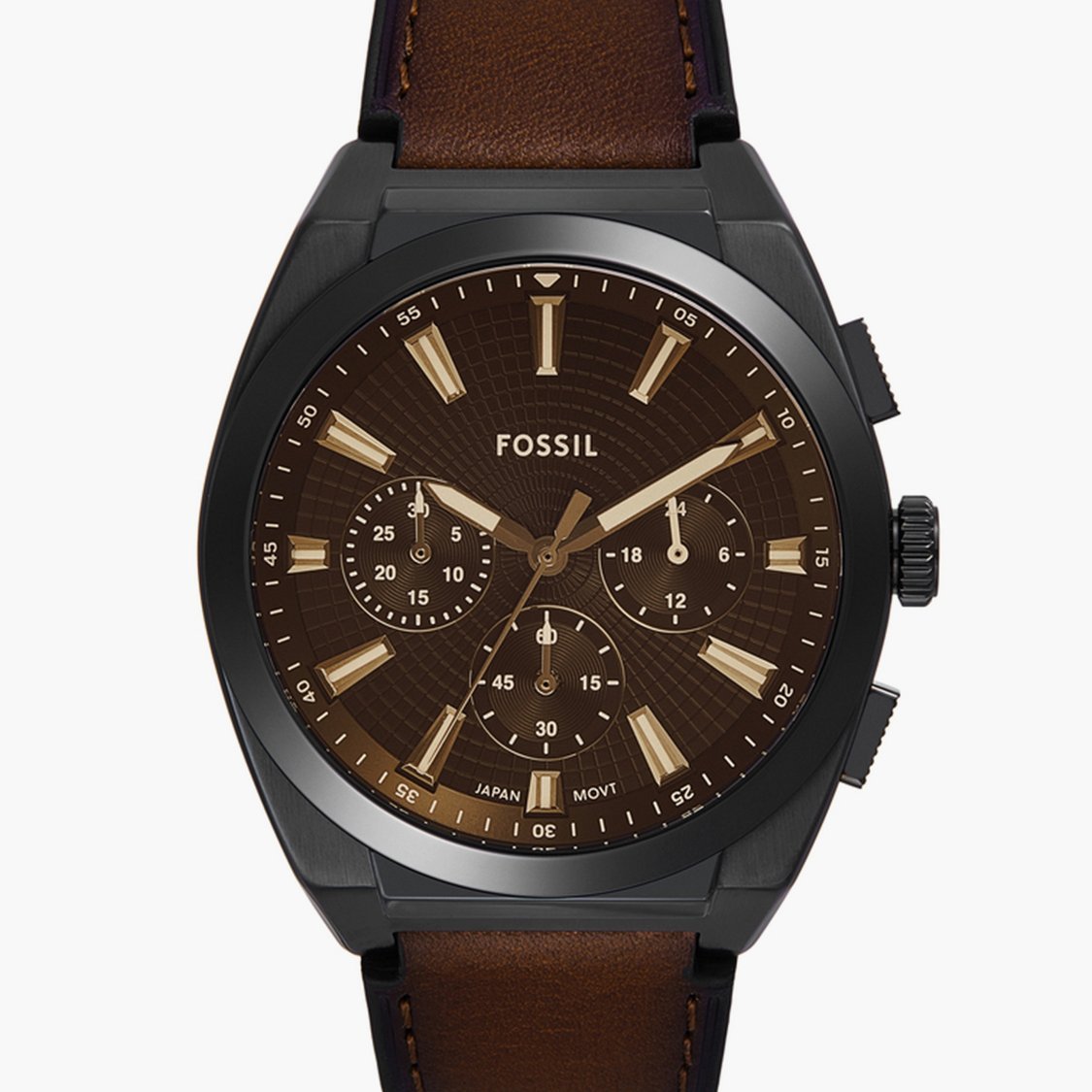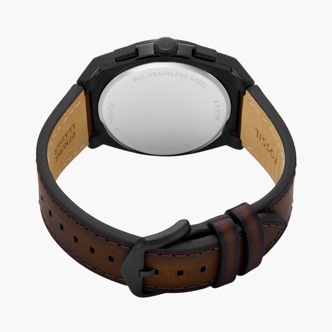 Elevate your watch game with this designer 44mm chronograph watch that comes with a round dial, functionality subdials, and a three-hand movement with stick indices. The watch also features water resistance up to 50 meters and a sturdy leather strap with a tang buckle closure that ensures a secure fit.