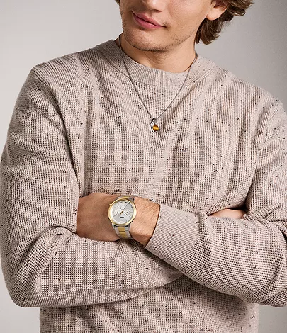 Sleek and purposeful, the Neutra Chronograph balances modern Incorporating elements from Mid-Century architecture, this chronograph features a well-balanced construction, decorated with a minimal silver sunray dial and sculpted two-tone finish case. A domed mineral crystal and precise Japanese movement lend this standout timepiece both precision and iconic style.
