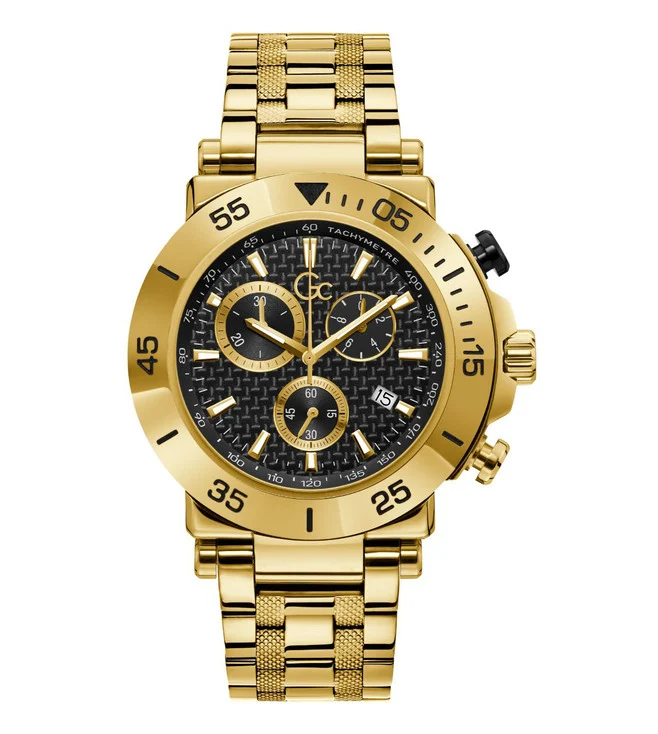 Exhibit a stylish look by wearing this watch from GC. Covered by a sapphire glass, the dial is nestled in a 44 mm case. It is water resistant up to 100 m. Team it with a pair of jeans and a t-shirt of your choice for a complete look.