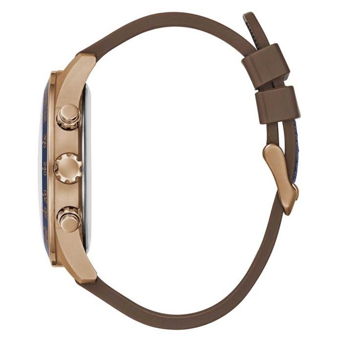 Intricately detailed and stylish, this analog watch from Guess is specially made for the urban men. Operated by a quartz movement, the blue round dial features stick hour markings and a crown for time adjustment. The nylon strap exudes a blue hue that accentuates the look of the timekeeper. Moreover, it is fitted with a buckle clasp to ensure a secure fit on the wrist.