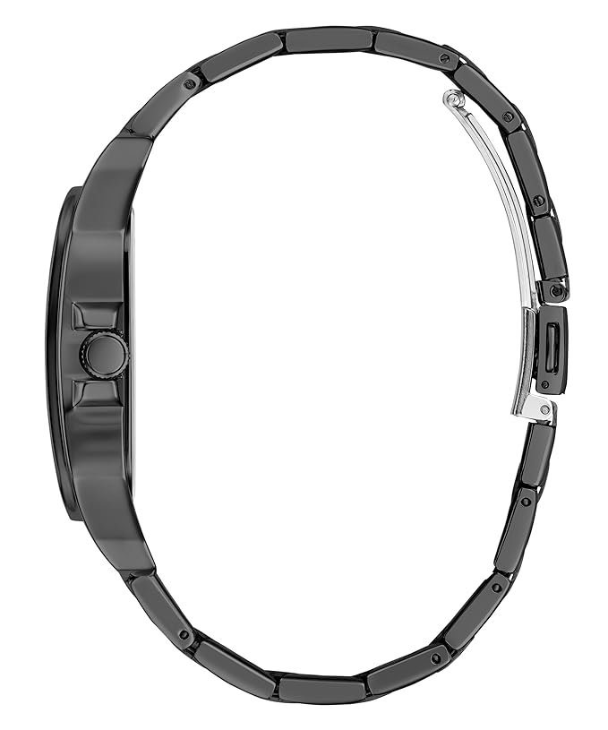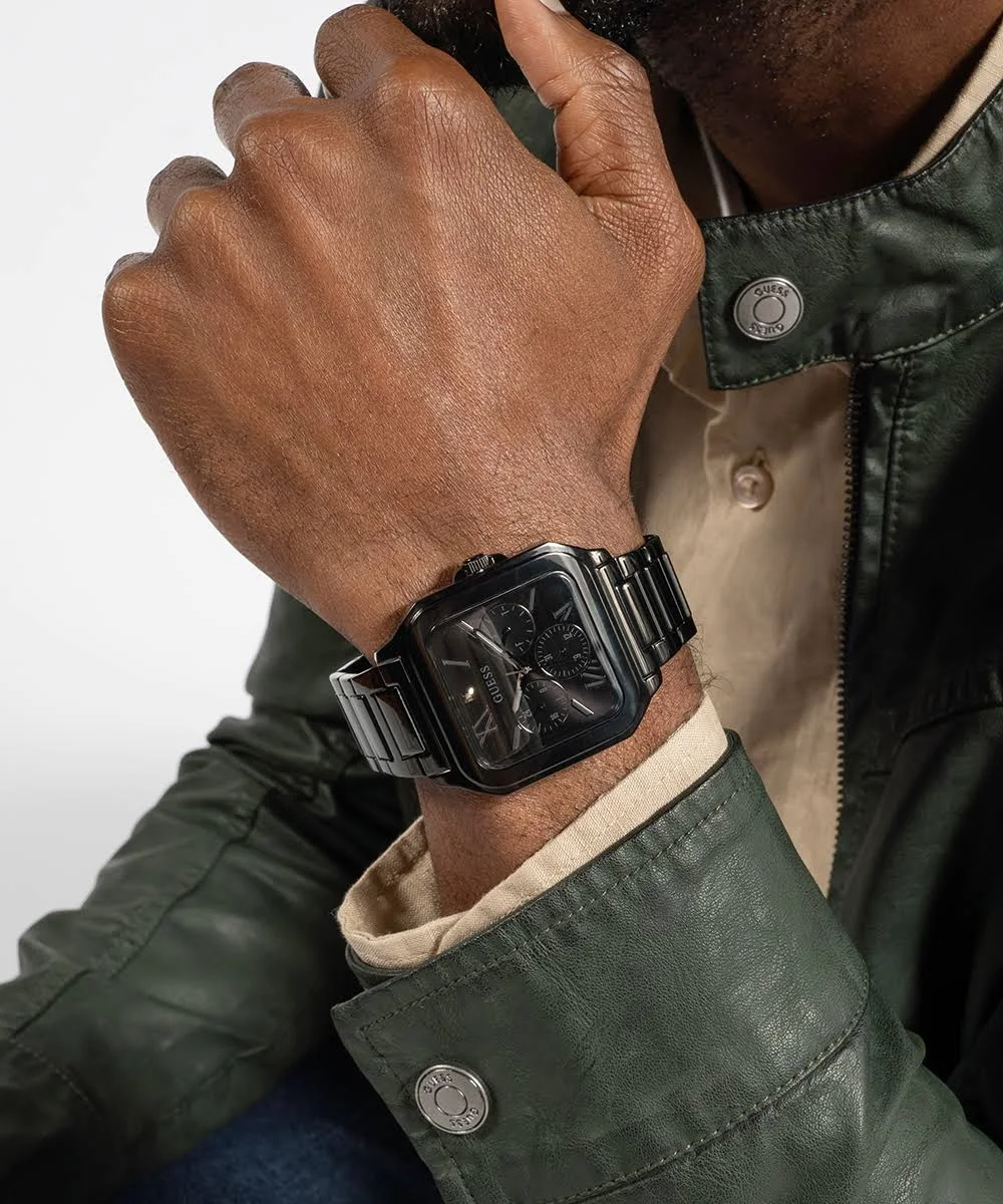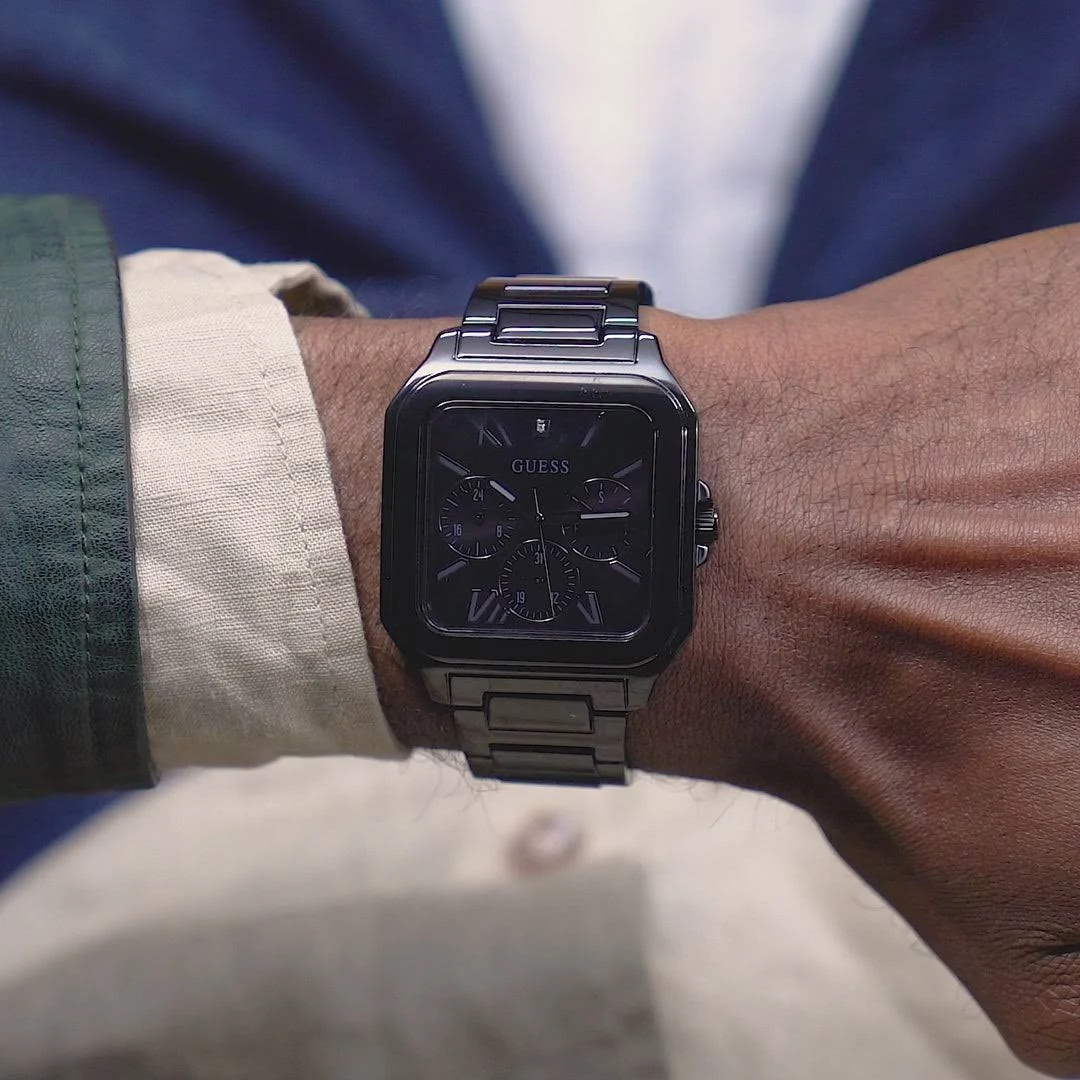 Get hold of this stylish watch from Guess. Housed in a 42 mm case, the dial is shielded with mineral glass and runs on a quartz movement. It is water resistant up to 30 m and is finished with a strap buckle to guarantee a snug fit on the wrist. It is a contemporary and stylish timepiece that combines durability with a modern aesthetic. The dial adds a touch of sophistication and versatility, making it suitable for various occasions. This watch is an ideal choice for those who appreciate a sleek and fashionable accessory that complements their style.