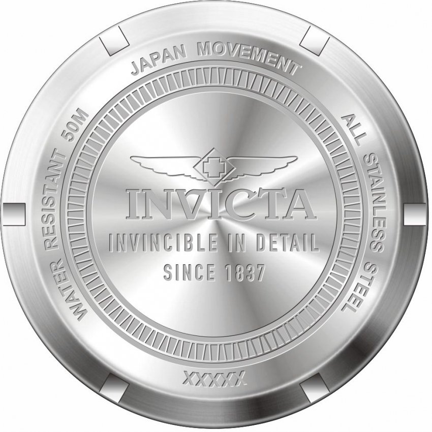 This Invicta 29384 Specialty watch has a 43 mm gold stainless steel case and precise Quartz movement. The silver dial is protected by a highly resistant mineral Crystal. A gold stainless steel band completes this masterpiece, along with water resistance of up to 50 m. Invicta 2-year warranty included.