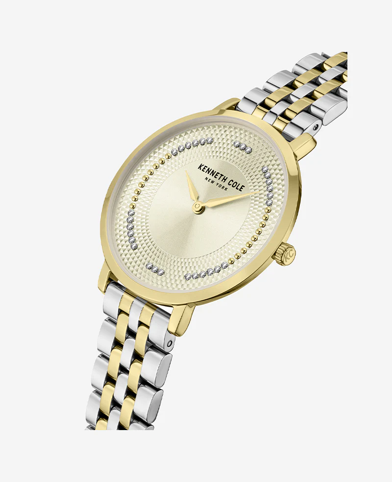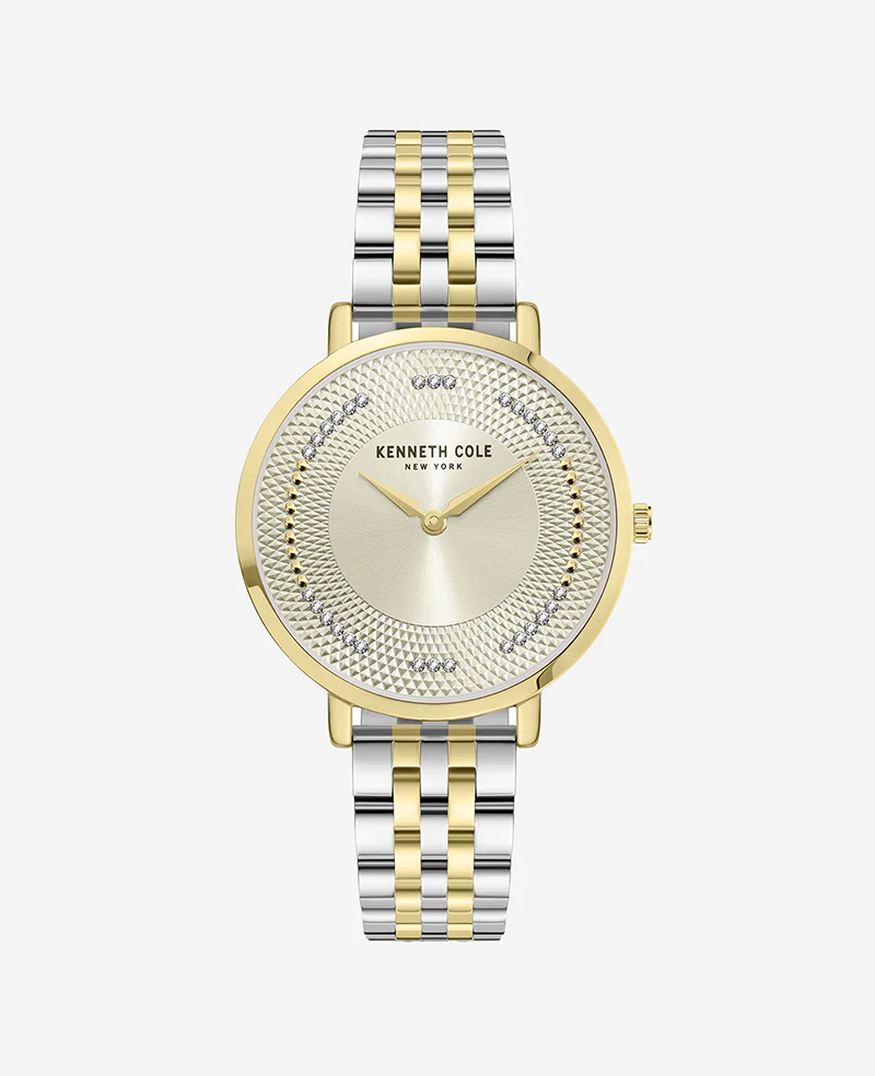 Expressing character and personality through an unmistakable ‘stand out’ accessory. Personifying class and contemporary style, Kenneth Cole’s modern classic watch delivers a simple layout – legible hands and subtle sophitication. The champagne dial showcasing striking crystals decked in line on a pattern and the inner dial displays a calm and composed smooth dial. Truly a Kenneth Cole watch where minimalism and sophistication blend harmoniously.
