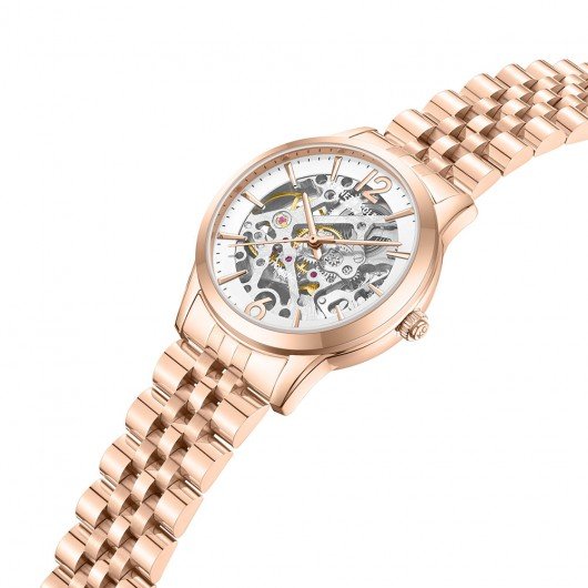 Experience Luxury in Motion: The robust stainless steel 36mm case not only exudes nobility but also impart Rose Gold case colored shine to the watch. The women’s automatic movement ensures precise timekeeping without the need for a battery, featuring a proper manual winding mechanism (Self-Winding) to effectively reduce time deviation.