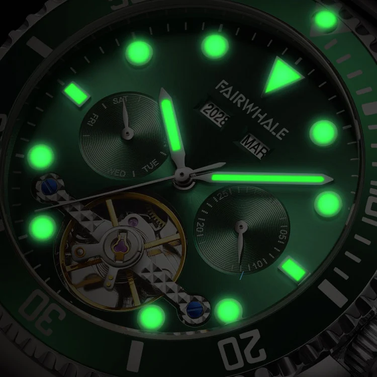 The strong vision night light function ensures that you can easily read the time even in the darkest of environments. And with the aesthetics of the hollow large flywheel and the lowkey yet luxurious hollow-out design, this watch exudes a sense of strength and power that will make you stand out from the crowd.