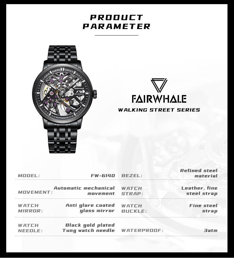 Built to last, this watch features mineral glass that is wear-resistant and scratch resistant, ensuring a clear and pristine view of the intricate mechanical movement underneath. The transparent back design allows you to appreciate the mesmerizing mechanics of the watch, adding to its allure.