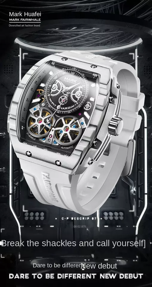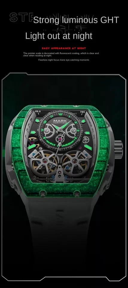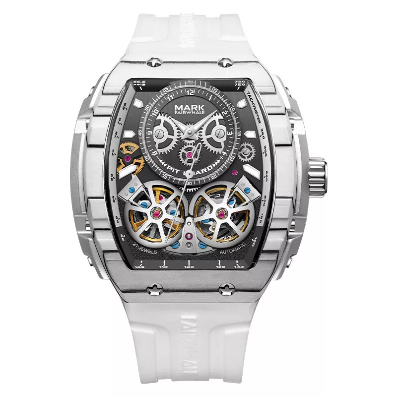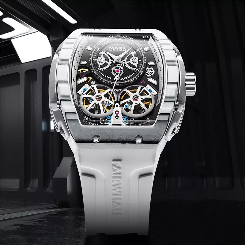 The central dial proudly displays the distinguished “MARK FAIRWHALE”, a name that exudes sophistication and heritage, standing as a hallmark of timeless elegance and innovative design. Beneath this emblematic branding, the phrase “SPIRIT OF ADVENTURE” is masterfully etched in an arched formation, evoking a sense of daring exploration and boundless possibilities, perfectly resonating with the ethos of those who dare to dream beyond limits.