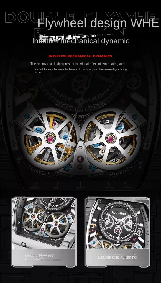 At the lower portion of the dial, the inscription “21 JEWELS AUTOMATIC” signifies the mechanical marvel housed within, a testament to the meticulous craftsmanship that powers this exquisite creation. The 21 jewels ensure smooth and enduring movement, embodying the pinnacle of horological expertise. Every element of the dial, from its intricate detailing to its purposeful inscriptions, speaks to a celebration of innovation, luxury, and a spirit of adventure.