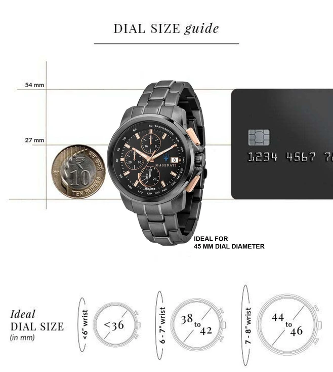 Make your everyday outfit attractive with Maserati Successo men’s watch. Comprises 50 m water resistance to withstand submersible conditions like rain. An elegant metal bracelet secures it firmly on your wrist. Packed with features that enhance your lifestyle, this is a must-have.