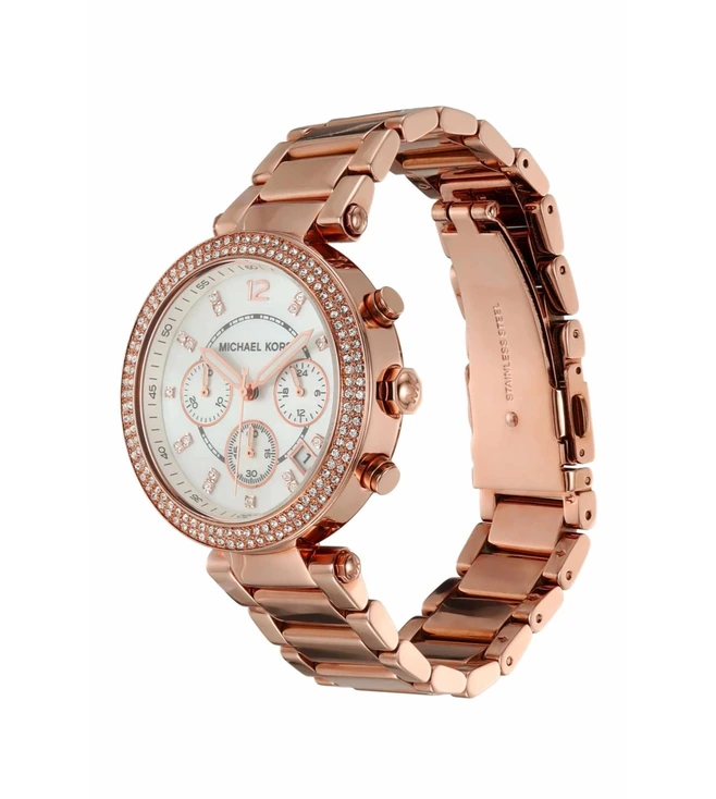 Designed to suit the preference of urban women, this analog watch from Michael Kors is sure to make a style statement. The rose gold round dial is protected by a mineral glass. On top of the season’s trends, this Michael Kors chronograph is brilliant in rose gold-tone stainless steel. Besides, it is completed with a deployment clasp with push button clasp to ensure a secure fit on the wrist.
