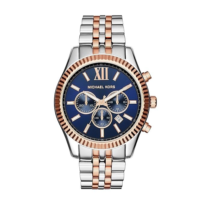 Michael Kors Lexington Chronograph Quartz Two Tone MK8412 Men’s WatchThe MK Lexington is a classic-looking watch in duo-tone, the rose gold with a subdued gleam making it fit for everyday use. It is a great watch for attending events – both social and sportive and invariably makes a cool addition to your Friday dressing. Touching the realms of both traditional and trendy, the Lexington’s rugged and masculine appeal is endlessly versatile!