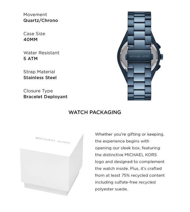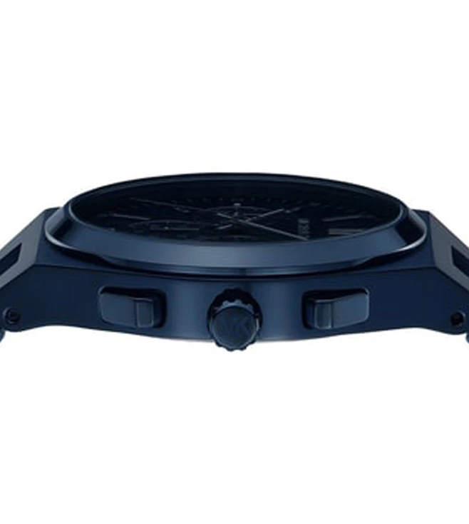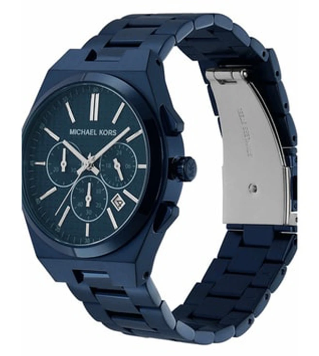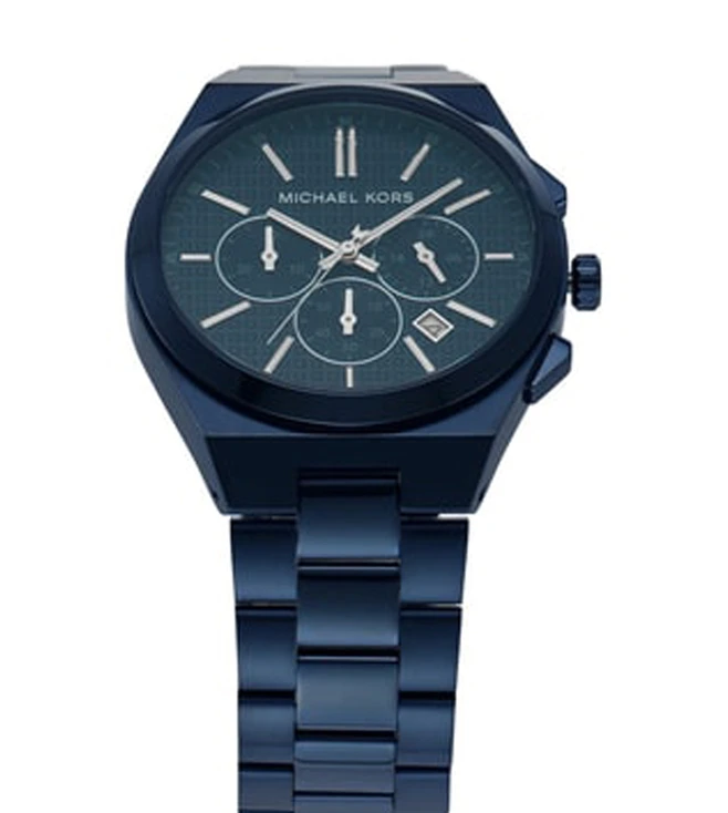 Look modish by donning this men’s analog watch from the collection by Michael Kors. The blue round dial is protected by a mineral glass. It features a crown for time adjustment. The stainless steel strap comes in a blue hue that further elevates the look of the timekeeper. Besides, it is completed with a deployment clasp to ensure a secure fit on the wrist.