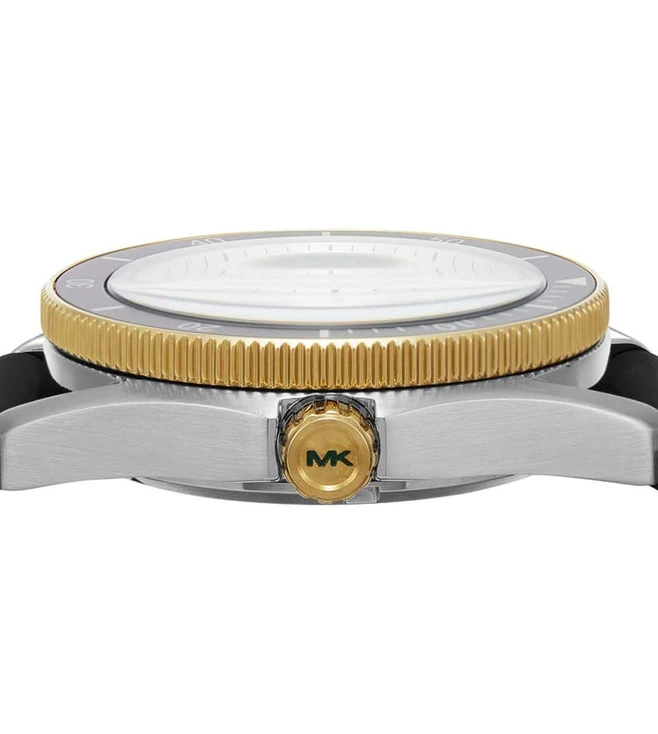 Wear the minute of excellence with this wristwatch from Michael Kors. The watch dial is protected with mineral glass and is water resistant up to 200 m. The timepiece works on a quartz movement. It is a must-have accessory for trendy individuals.