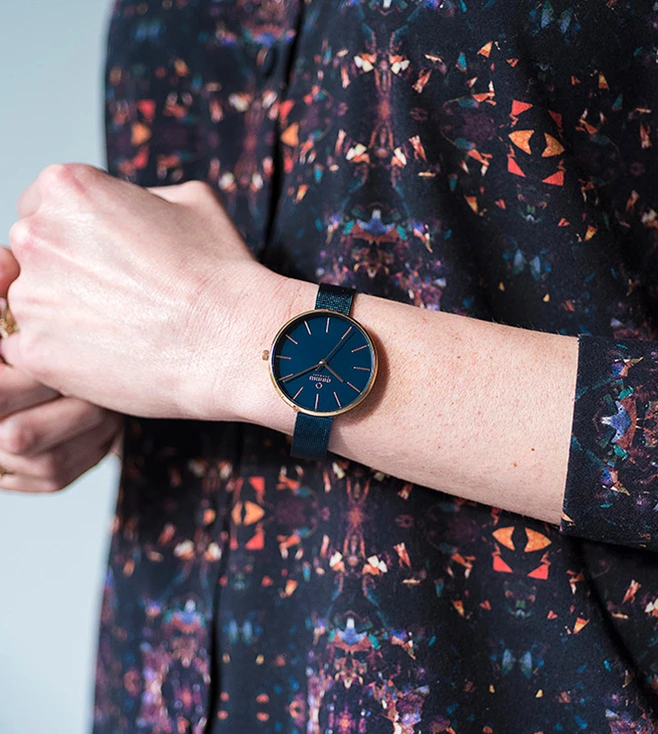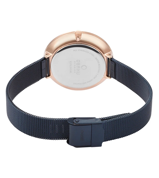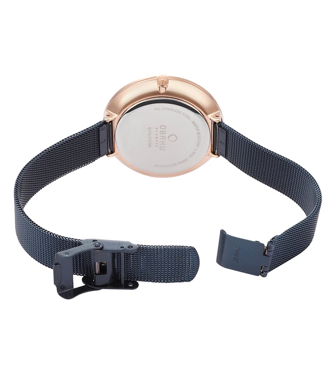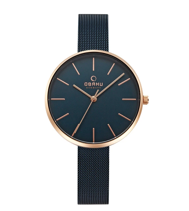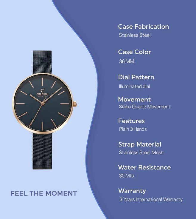 Craft an urban look wearing this trendy women’s analog watch from Obaku’s Viol Ocean collection. Operational on a quartz movement, the navy round dial exhibits plain three hands and stick markings to ensure time reading ease. Made of a premium quality stainless steel, the bracelet is further finished with a clasp to ensure a secure fit on the wrist. This water-resistant wristwatch looks breathtaking when worn with a pair of trousers and a high-neck t-shirt.