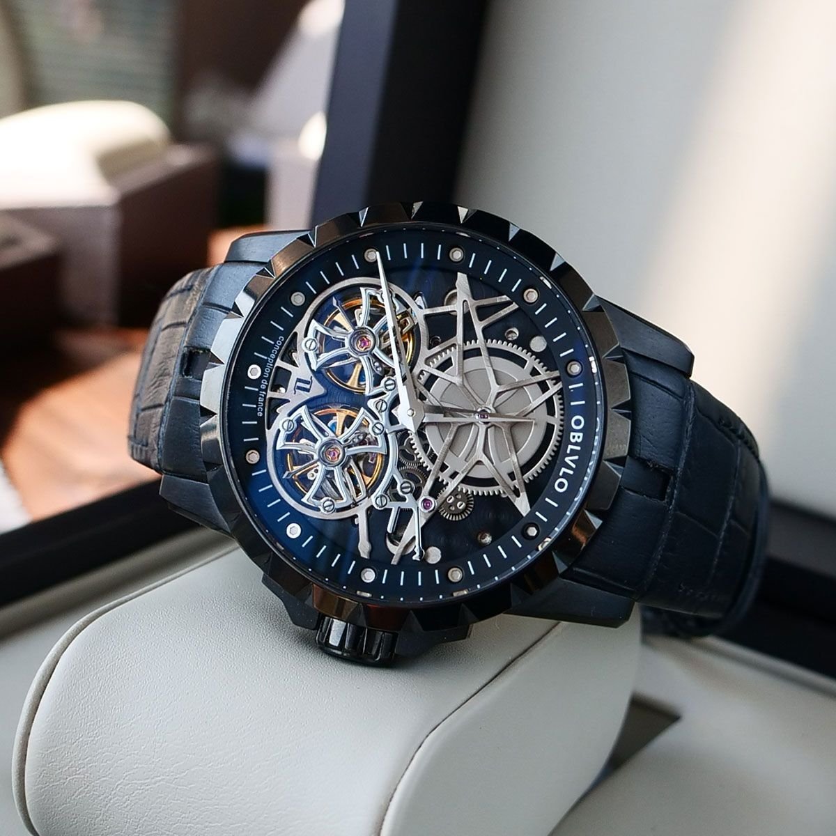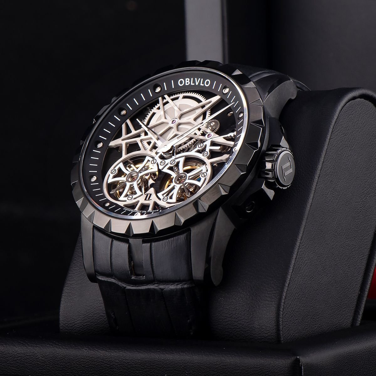 | The OBLVLO Double Tourbillon Skeleton RM-T-BBBB Watch is a refined expression of timeless elegance and masterful craftsmanship, blending the romantic spirit of French design with the precision of high-end horology. Designed in Paris and meticulously crafted in Morto, this remarkable timepiece embodies sophistication, passion, and artistry. Its double tourbillon movement, a rare and revered complication, offers exceptional accuracy while the skeletonized dial reveals the mesmerizing dance of intricate mechanics beneath. Every detail — from its dynamic color contrasts to the openworked architecture and polished finishes — speaks to a relentless pursuit of perfection. More than a watch, it is a statement of character and culture, inviting its wearer to embrace the romance, elegance, and enduring beauty of fine French watchmaking. |