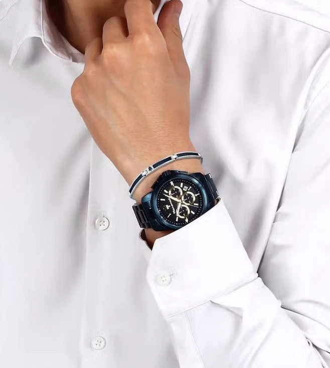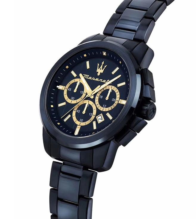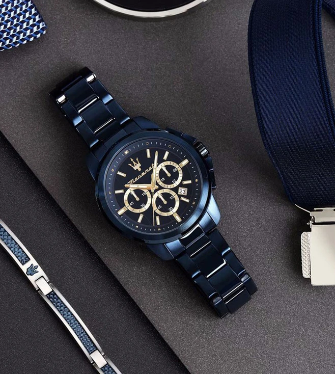 Maserati Successo R8873621042 is an extraordinary men’s watch that stands out for its elegance, precision and style. Presented in a gift set, this quartz timepiece is not only a perfect gift, but also an indispensable part of a man’s closet. With a water resistance of up to 50 meters, it is suitable for both everyday wear and special occasions. The blue dial with gold elements adds to its unique luster and character. The chronograph functions, date-of-the-month sub-dial and 24-hour time provide not only a stylish look, but also practicality for everyday use.