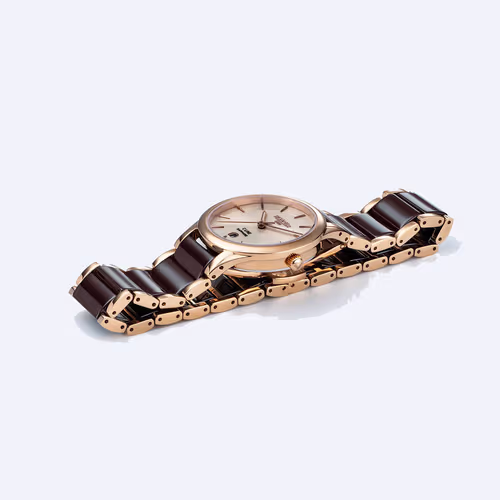 High tech ceramic also scores well in ladies’ watch design, as a particularly durable, lightweight and shock resistant material for bracelets. The feminine version of the C line picks up the sporty, elegant design with date window, double baton marker at the 12 o’clock position and sword shaped central hands. Only distinction the C line ladies features a 30 mm stainless steel case, better suited to the mostly slimmer female wrist.