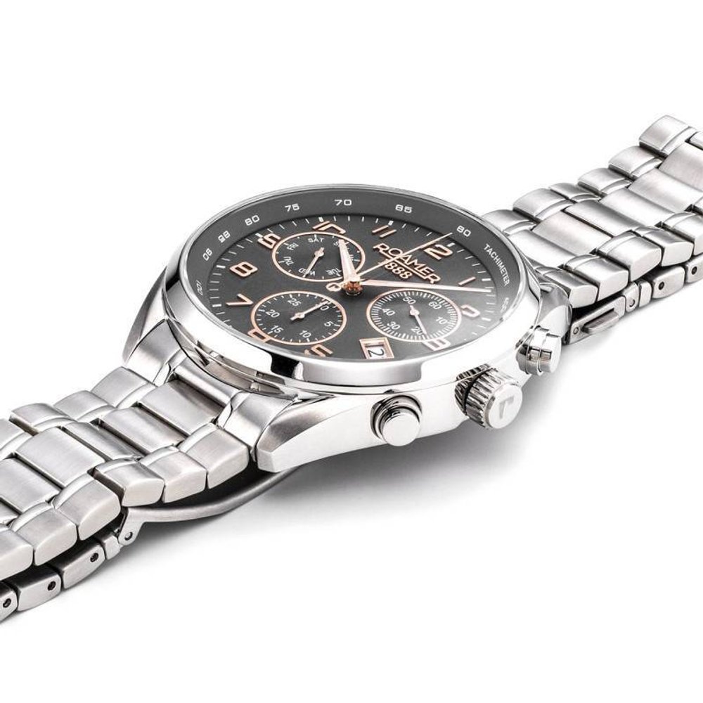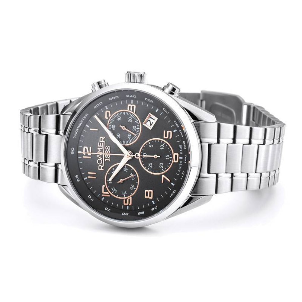 Experience the epitome of precision and elegance with Roamer’s Pro Chrono timepiece. Meticulously crafted, the watch features a robust 43.5MM stainless steel case and a Swiss-made quartz movement, ensuring reliable performance. With 10 ATM water resistance and superluminal accents, this chronograph watch guarantees accuracy and readability, even in low-light conditions.