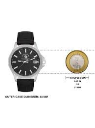 Amaze everyone around you by wearing this men’s analog watch from Santa Barbara Polo & Racquet Club. The black round dial is protected by a mineral glass. The leather strap comes in a black hue that further elevates the look of the timekeeper. Besides, it is completed with a fold-over push button clasp with safety clasp to ensure a secure fit on the wrist.