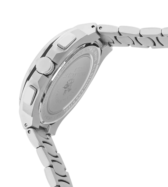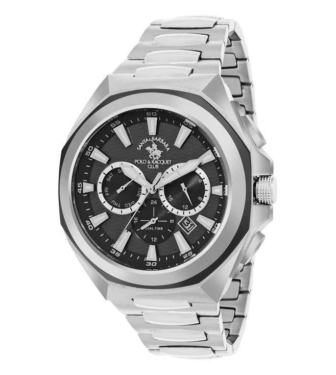 Wear the minute of excellence with this watch from Santa Barbara Polo & Racquet Club. The dial is shielded with mineral glass. The timepiece runs on a quartz movement. Besides, it is water resistant up to 50 m and is finished with a fold-over clasp with safety to guarantee a snug fit on the wrist.