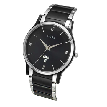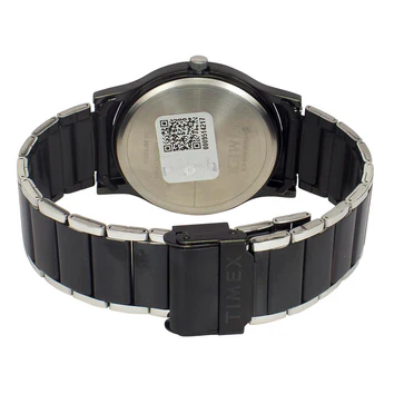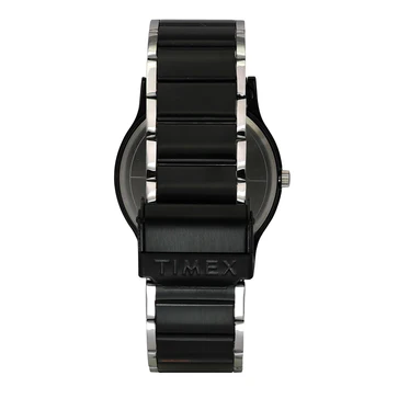 Set your fashion parameters high with this men’s analog watch by Timex. Protected by a mineral glass, the black round dial is housed in a 39 mm case. It exudes plain three hands. The stainless steel strap vaunts a black hue that enhances the look of the watch. Moreover, it is fitted with a hook buckle clasp that ensures a secure fit on the wrist.