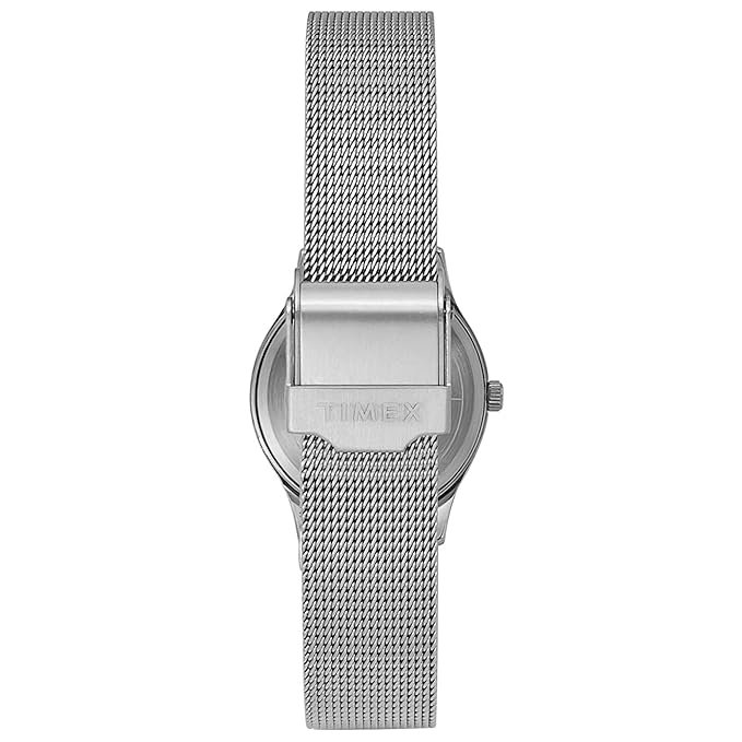 Amaze everyone around you by wearing this women’s analog watch from Timex. The blue round dial is protected by a mineral glass. It features plain three hands and a crown for time adjustment. The stainless steel strap comes in an elegant silver hue that further elevates the look of the timekeeper. Besides, it is completed with a hook buckle clasp to ensure a secure fit on the wrist.