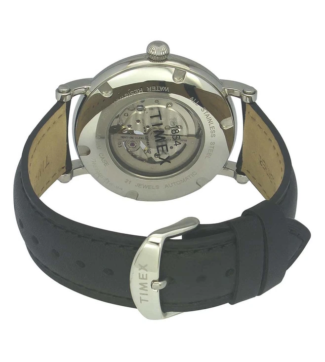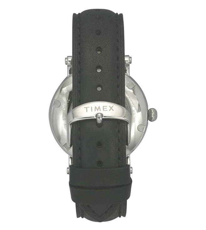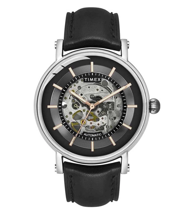 Enrich your watch collection with this full-skeleton automatic watch from Timex that comes with a black dial and a sapphire nano-coated domed crystal. Its black Italian leather strap further accentuates its design.