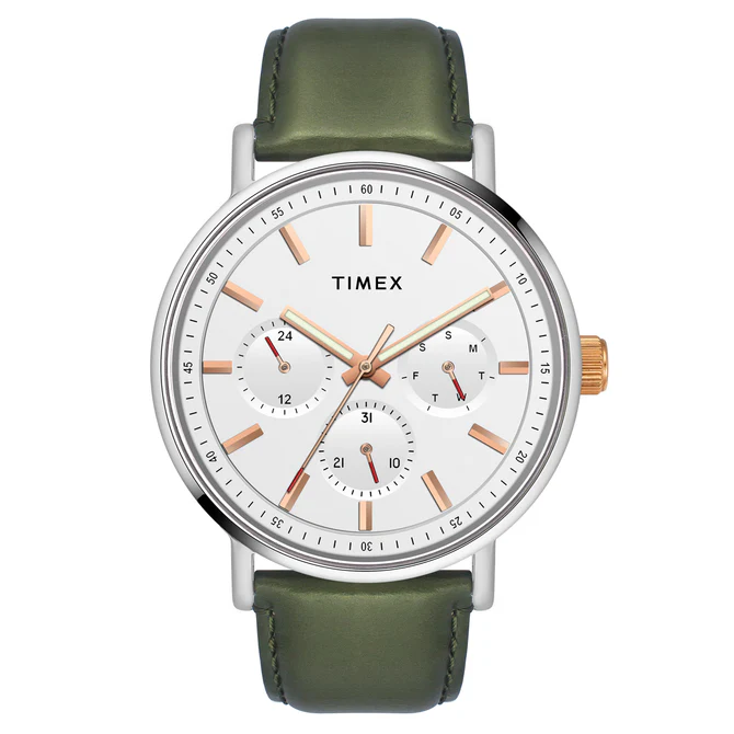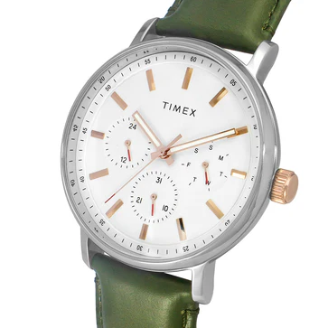 Make your everyday outfit attractive with this admirable watch from Timex. It comes with a round-shaped mother-of-pearl dial nestled in a case of 43 mm diameter. Showcasing a smartwatch functionality and quartz movement, it comes with a buckle clasp that ensures a secured fit around the wrist.