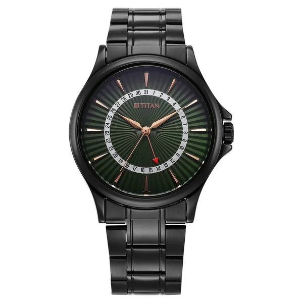 Titan Karishma Quartz Analog with Date Green Dial Stainless Steel Strap Watch For Men 10038nm01