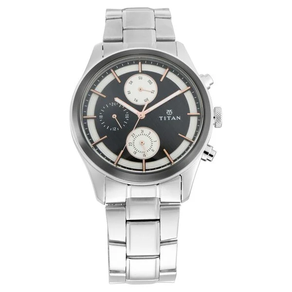 Embrace classic yet contemporary style with this silver, black, and white multifunctional watch. The contrasting black and white dial with multifunction subdials adds a modern touch. The stainless steel case and oyster strap complete the look. Pair it with casual or semi-formal attire for a versatile appearance.