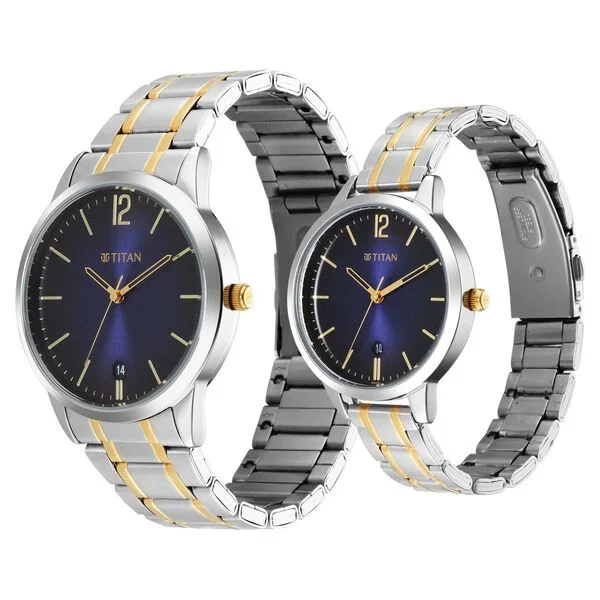 An apt inclusion to keep yourself updated, this couples’ analog watch from the Bandhan collection by Titan is sure to elevate your look. The blue round dial is nestled in an elegant case. It vaunts plain three hands and a crown for time adjustment. The stainless steel bracelet flaunts a silver hue that accentuates the look of the timekeeper. Besides, it is completed with a push button clasp to ensure a secure fit on the wrist. This water-resistant watch will be your timeless possession.