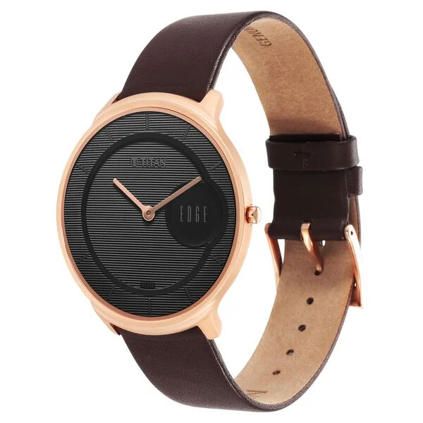 An eye-catching black round dial makes this men’s analog watch from the Edge collection by Titan a great inclusion to your watch collection. The dial is housed in an elegant case. It exhibits plain two hands and a crown for time adjustment. The genuine leather strap vaunts a brown hue that enhances the look of the watch. Besides, it is completed with a buckle clasp to ensure a secure fit on the wrist. This water-resistant watch will be your timeless possession.
