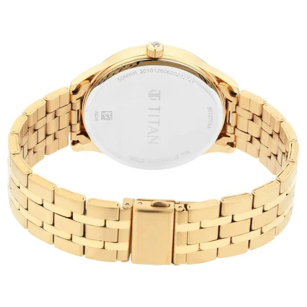 For the man who exudes an aura of power and poise, this rich-looking watch features an intricately patterned silver-white dial with day and date function. The dual-finish metal strap and solid gold applique indices add casual extravagance. Showcase your glamorous side by pairing it with a well-tailored suit or formal ensemble.