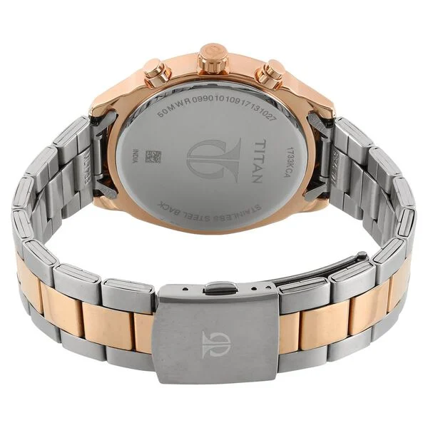 Exquisite and designed for men, this analog watch with a Silver White dial comes in a round metal casing and a bimetal rose gold strap. Water-resistant and with a 24-month warranty, it’s a thoughtful gift. The watch is not just a timekeeping device but a symbol of thoughtful elegance. To highlight its refined appeal, style it with a formal suit, creating a polished look for special events.