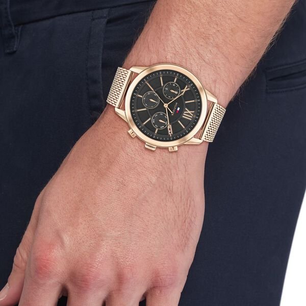 Make a statement of style and refinement with the tommy hilfiger watch. Meticulously designed to exude opulence and luxury, this timepiece effortlessly blends timeless aesthetics with modern functionality. The sturdy stainless steel case and bracelet lend an elite appeal, while the precise quartz movement ensures impeccable accuracy.