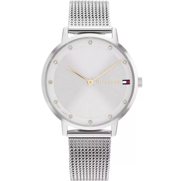 The material of the Tommy Hilfiger Pippa women’s watch TH1782665 watch case is stainless steel, its color is silver, the material of the strap is stainless steel and its color is silver. The diameter of the watch case is 34 mm, its shape is wheel. The glass of the watch is crystal (difficult to scratch), its mechanism is quartz, and its water resistance is 3 atm (30m) (drip-free).